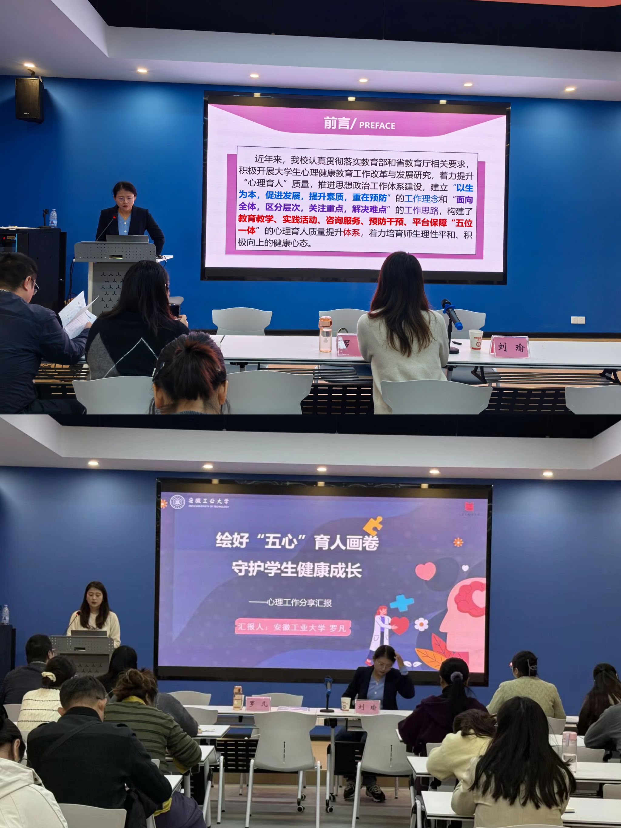 会上,刘瑜老师结合自身多年工作经验,从心理课程开设、团辅活动设计、心理委员队伍建设以及学生心理素质提升等方面展开深入分享,并从校心理中心角度为我院心理健康教育工作提供了全面指导;罗凡老师以《绘好“五心”育人画卷 守护学生健康成长》为题,结合学院专业特色分享心理教育工作站优秀做法,通过典型案例剖析、数据对比分析,为在场人员提供了极具针对性和可操作性的实践思路,赢得了阵阵掌声。