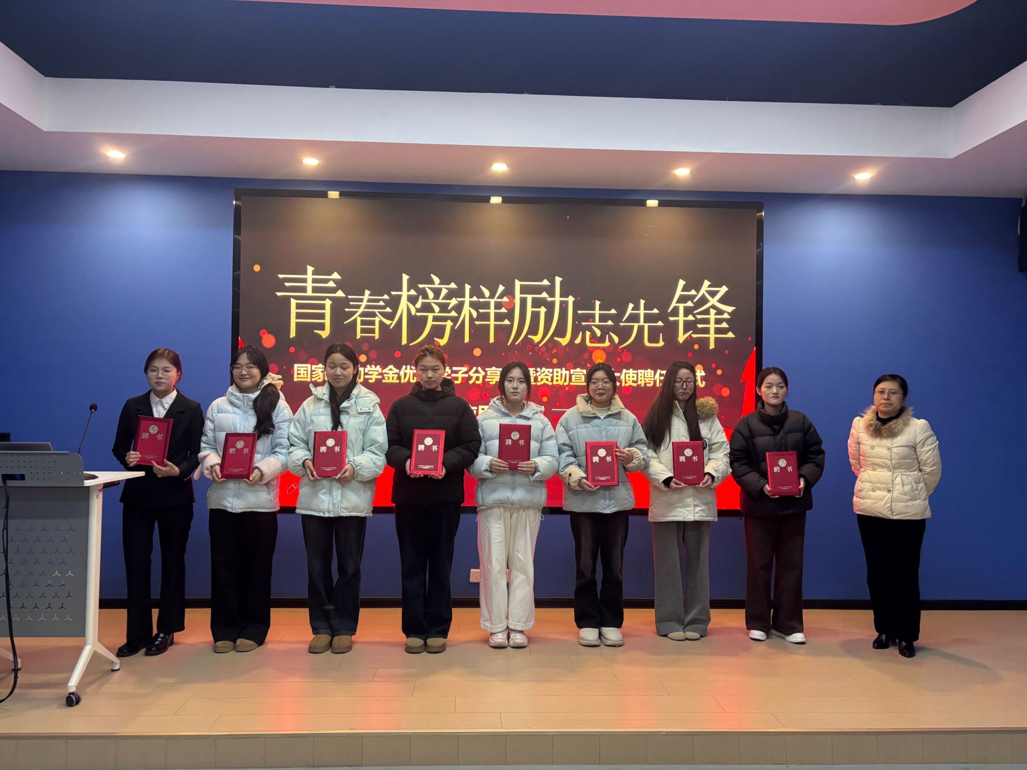 分享环节结束后,资助宣传大使聘任仪式顺利开展。系党总支副书记张丽为受聘的资助宣传大使颁发聘任证书,并对大使们提出殷切期望。她勉励各位大使主动扛起宣传责任,深耕国家资助政策学习,切实做好政策传播的“桥梁纽带”,带动广大受助同学们树立自立自强意识,在成长道路上励志成才、感恩奋进。分享环节结束后,现场学生代表受榜样事迹启发,认真梳理自身成长方向,主动提问、交流心得。